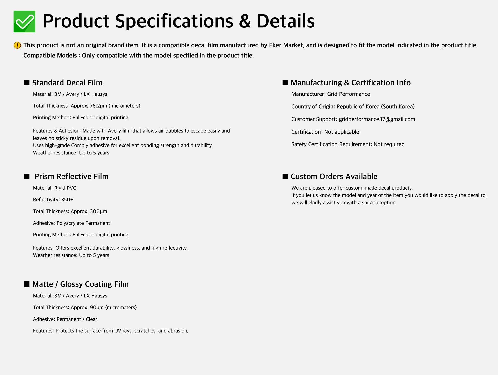 Our design approach focuses on balance and refinement, ensuring that our decals look premium without appearing cheap, even at close inspection.