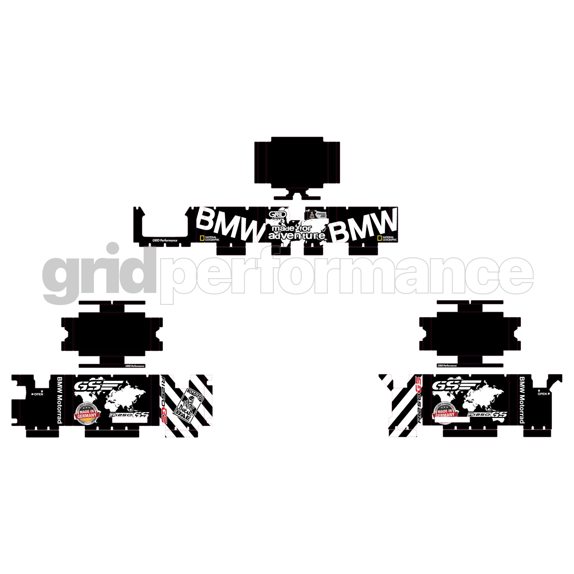 BMW R1200 R1250 GS Adventure Aluminium Panniers Top Box Decal Sticker Kit (1-0.Black)