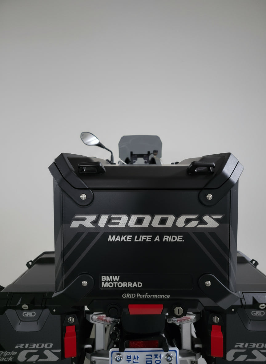 *This photo shows the (5-3.Triple Black)+Top Box decal kit installed on a BMW R1300GS Adventure.