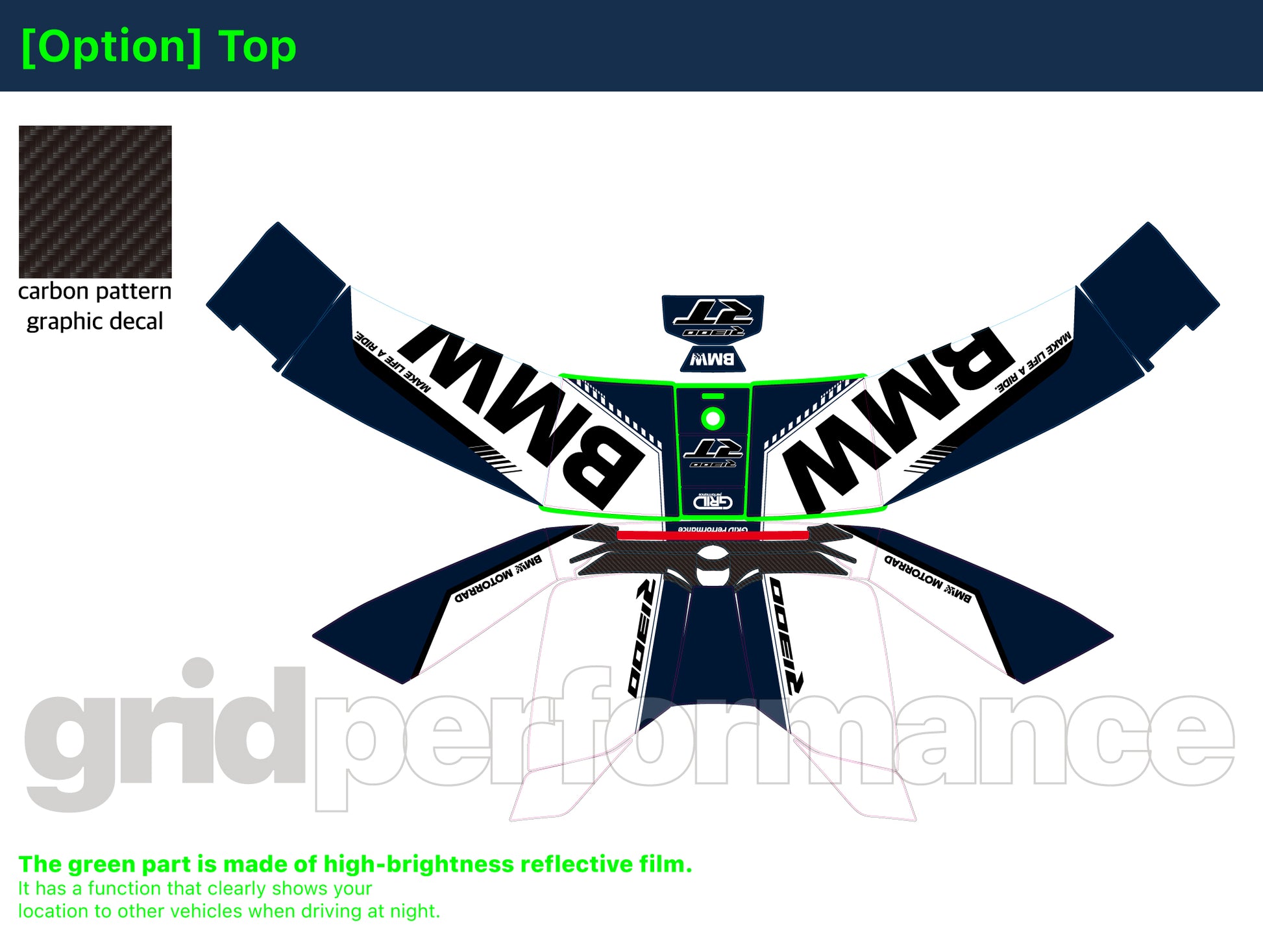 *This photo shows the(1-1.White Navy) Carbon decal kit installed on a BMW R1300RT.