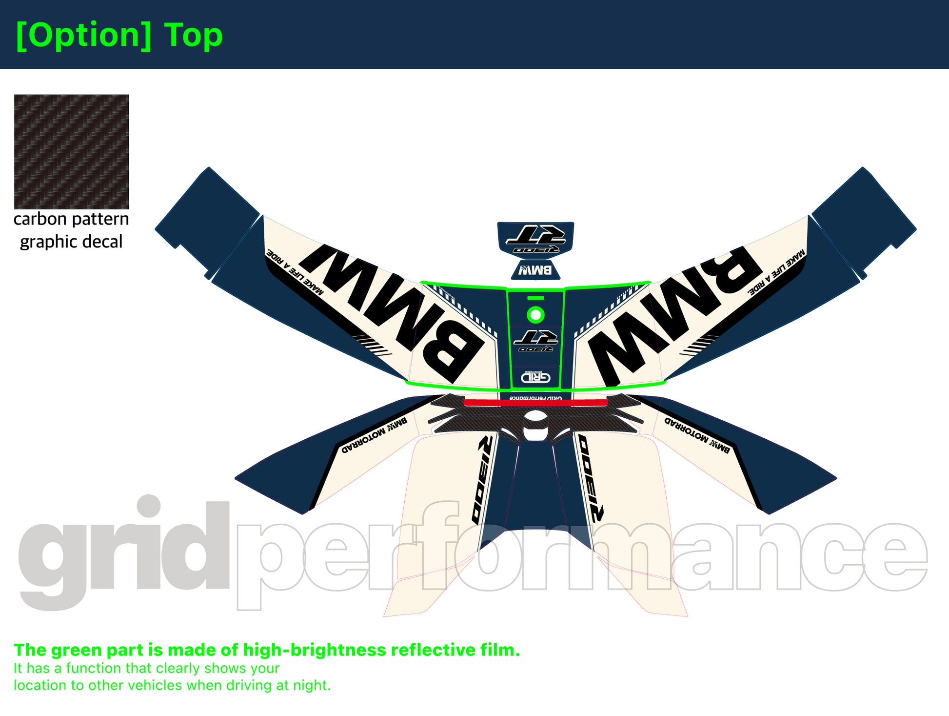*This photo shows the(1-1.White Navy) Carbon decal kit installed on a BMW R1300RT.