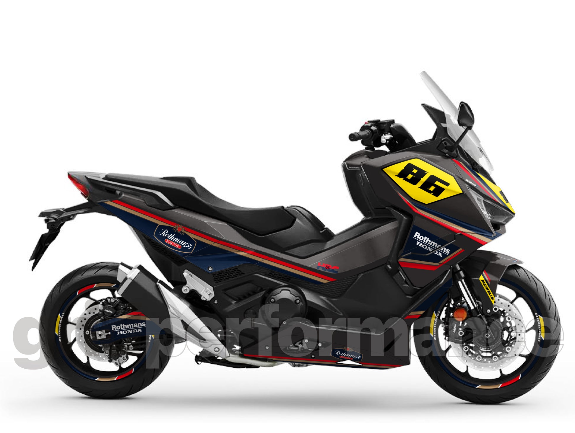 *This photo shows the (1-1.ROTHMA WHITE) + Unpainted Fairing Decals kit installed on a Honda Forza 750.