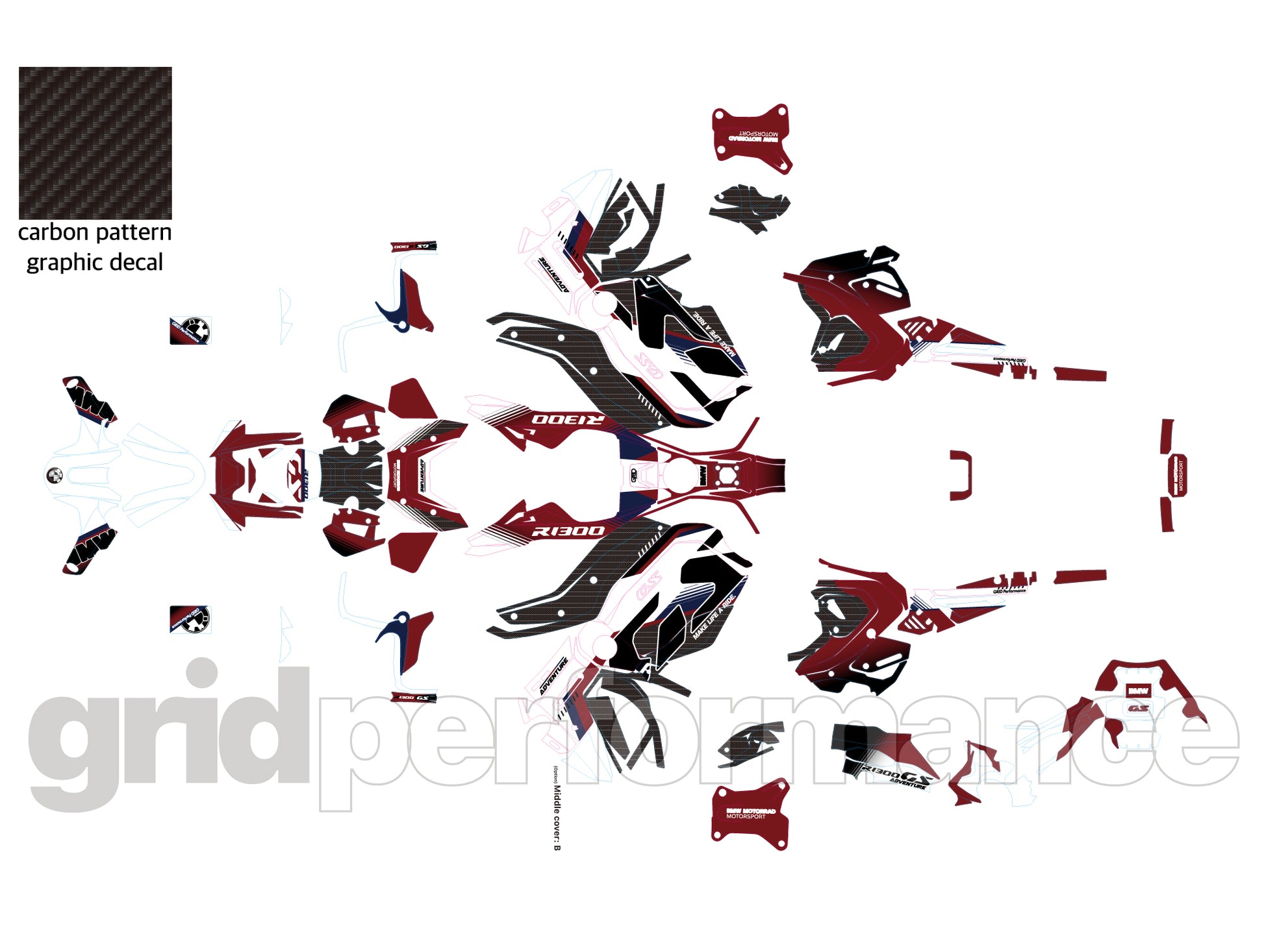 Motorcycle Fairing Decal Vinyl Sticker Kit – For BMW R1300GS ADV Adventure Type (11-5)